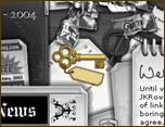 The Key: On the Links page, click the book with the question mark on its spine and move it to the left, then grab the key and put it on the chest on the right side of the screen.